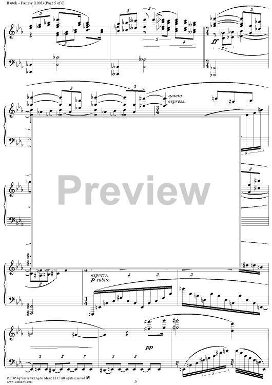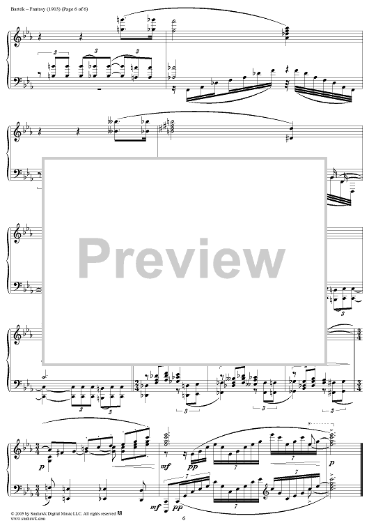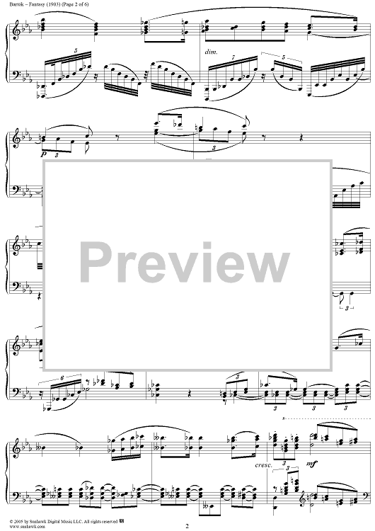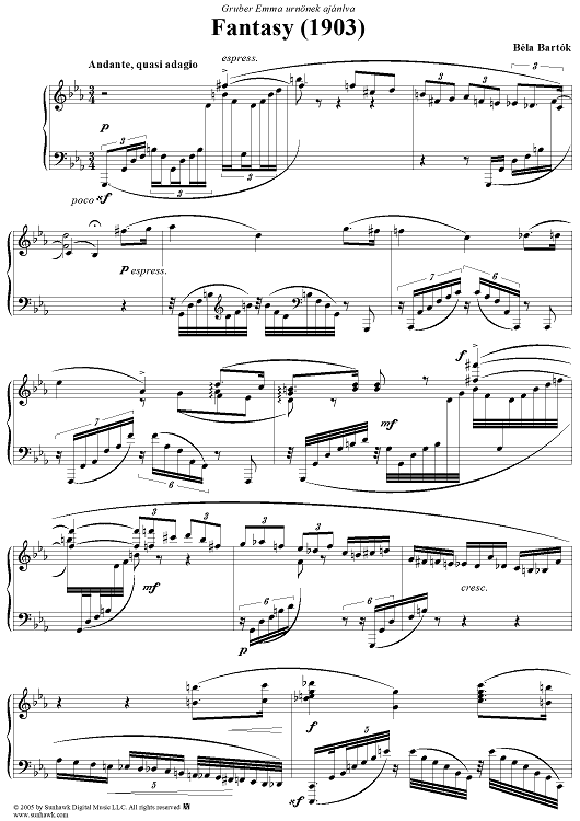 Digital Sheet Music for Fantasy (1903) by Bela Bartok scored for Piano Solo; id:311234