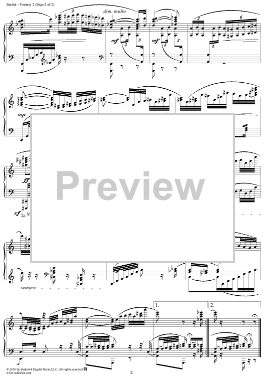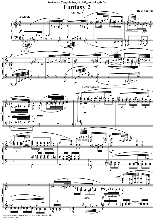 Digital Sheet Music for Fantasy II by Bela Bartok scored for Piano Solo; id:294171