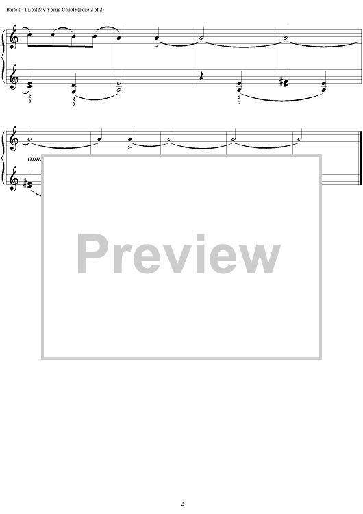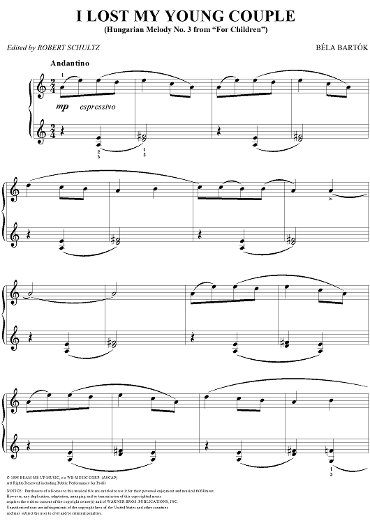 Digital Sheet Music for I Lost My Young Couple by Bela Bartok scored for Easy Piano; id:284634