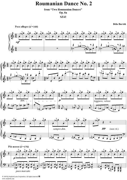 "No. 2: Poco allegro" Sheet Music by Bela Bartok