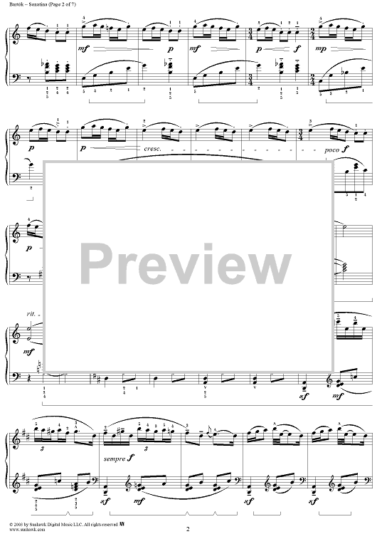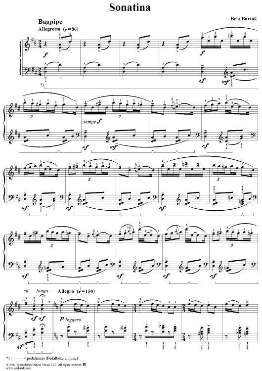 Digital Sheet Music for Sonatina by Bela Bartok scored for Piano Solo; id:294282