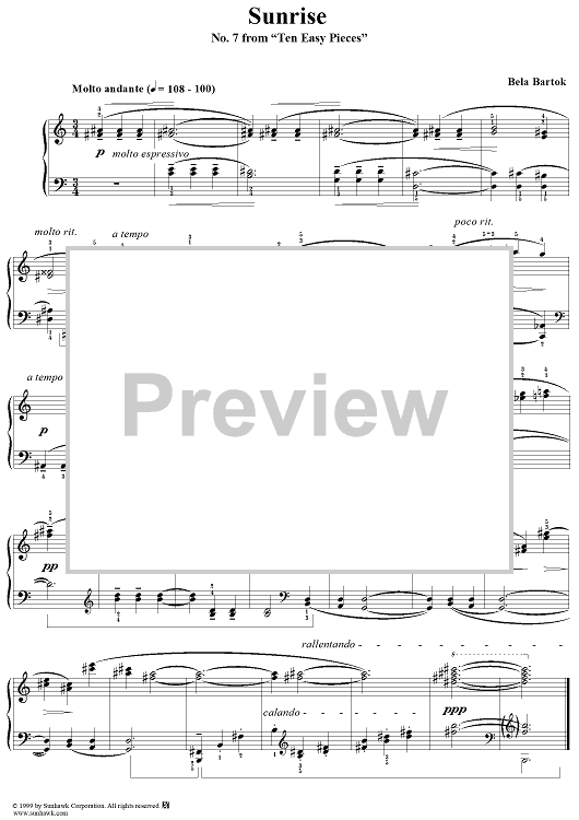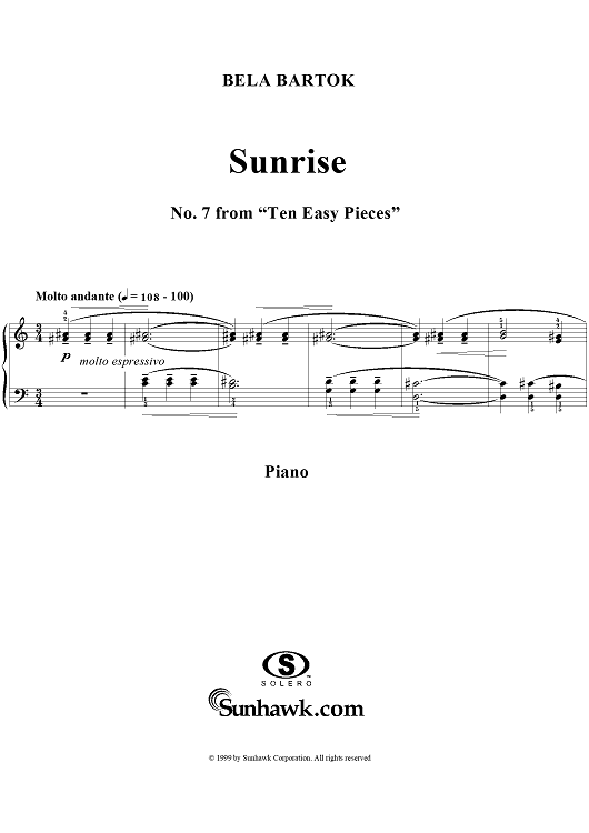 Digital Sheet Music for Sunrise - No. 7 from "Ten Easy Pieces" by Bela Bartok scored for Piano Solo; id:276497