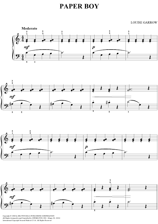 Digital Sheet Music for Paper Boy by Louise Gorrow scored for Piano Solo; id:449359