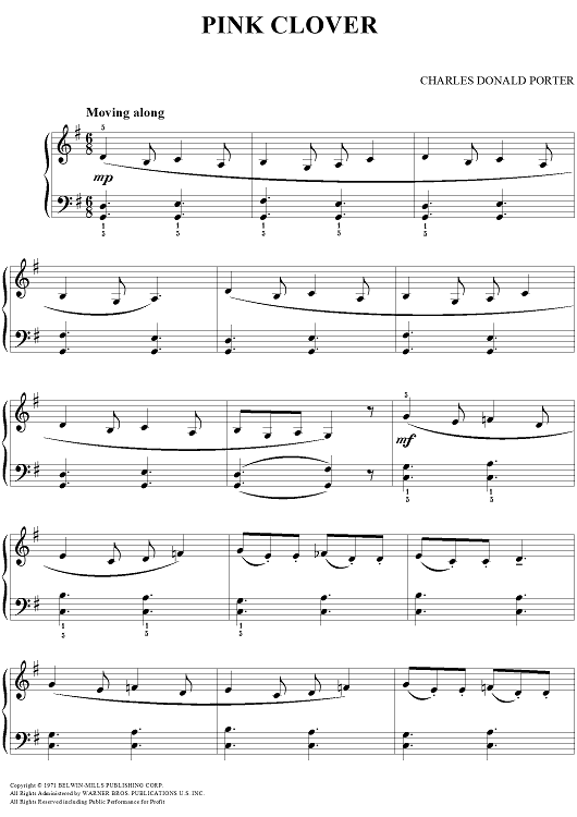 Digital Sheet Music for Pink Clover by Charles Donald Porter scored for Easy Piano; id:449380