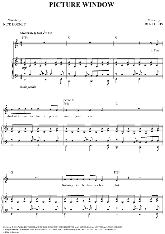 Digital Sheet Music for Picture Window by Ben Folds, Nick Hornby scored for Piano/Vocal/Chords; id:454440