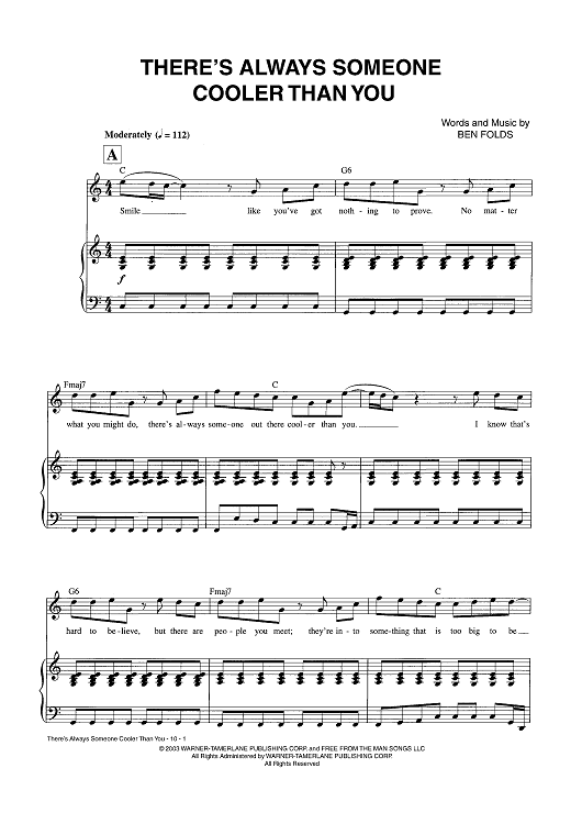 "There's Always Someone Cooler Than You" Sheet Music by Ben Folds