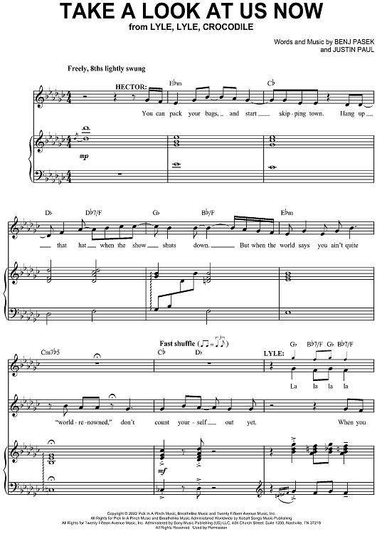 Digital Sheet Music for Take A Look At Us Now - from Lyle, Lyle, Crocodile by Benj Pasek, Justin Paul scored for Piano/Vocal/Chords; id:499722