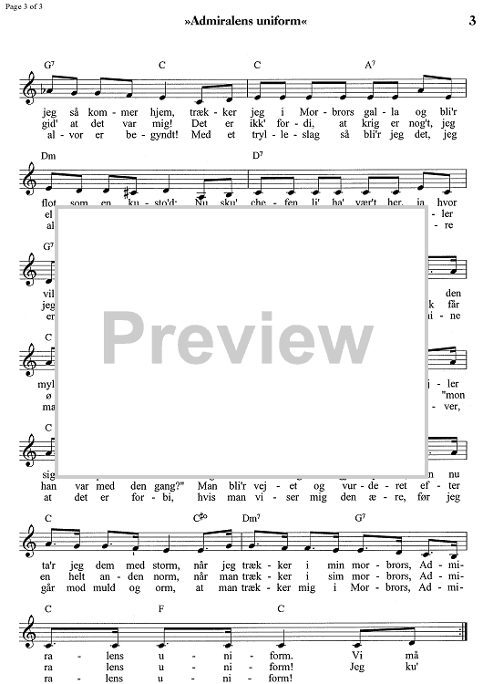Digital Sheet Music for Admiralens uniform - C Instruments by Bent Fabric scored for Lead Sheet; id:338681