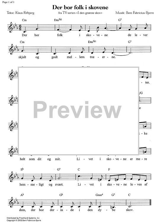 Digital Sheet Music for Der bor folk i skovene - C Instruments by Bent Fabric scored for Lead Sheet; id:338629