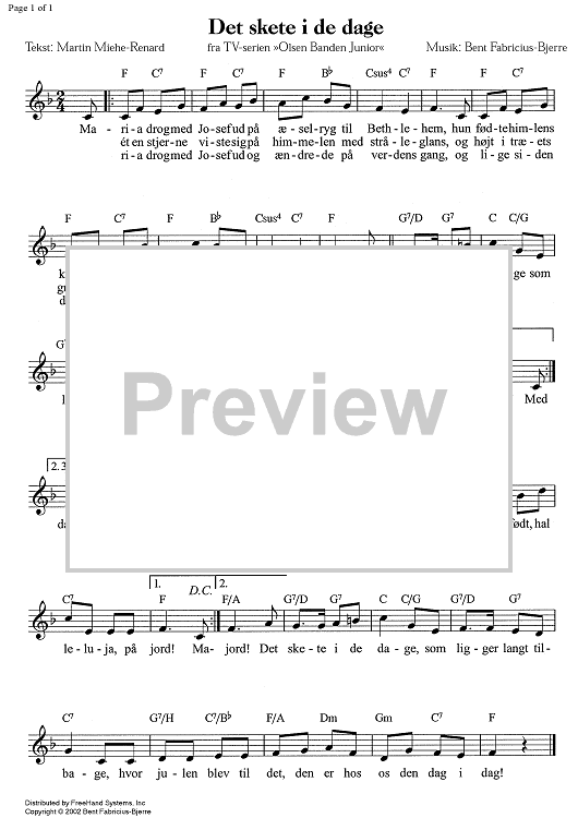 Digital Sheet Music for Det skete i de dage - C Instruments by Bent Fabric scored for Lead Sheet; id:338632