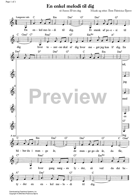 Digital Sheet Music for En enkel melodi til dig - C Instruments by Bent Fabric scored for Lead Sheet; id:338569