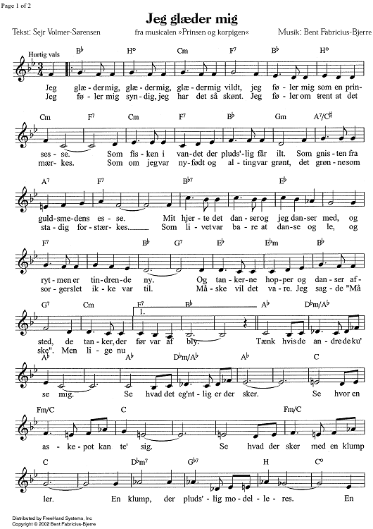 Digital Sheet Music for Jeg glaeder mig - C Instruments by Bent Fabric scored for Lead Sheet; id:338646