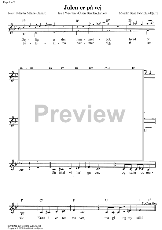 Digital Sheet Music for Julen er paa vej - C Instruments by Bent Fabric scored for Lead Sheet; id:338586
