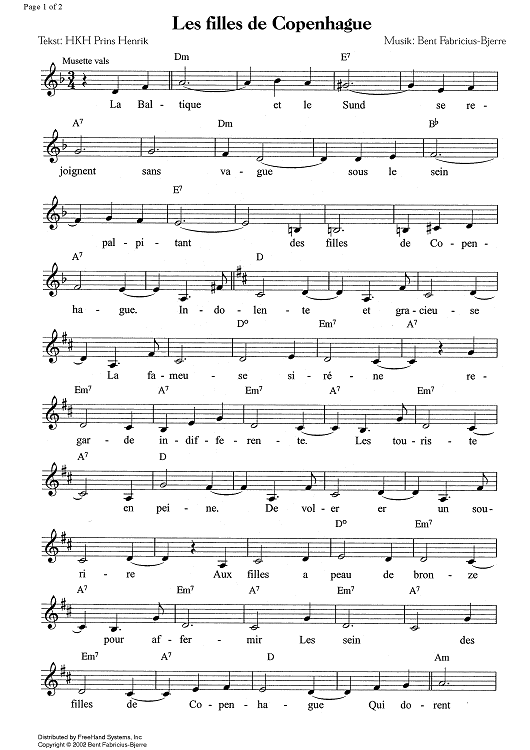 Digital Sheet Music for Les filles de Copenhague - C Instruments by Bent Fabric scored for Lead Sheet; id:338592