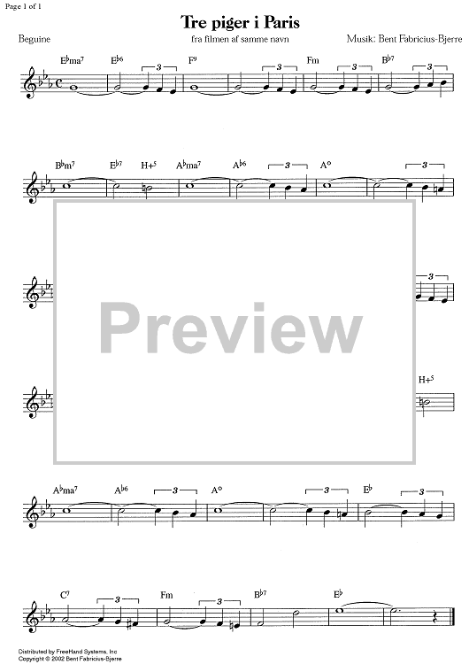 Digital Sheet Music for Tre piger i Paris - C Instruments by Bent Fabric scored for Lead Sheet; id:338669