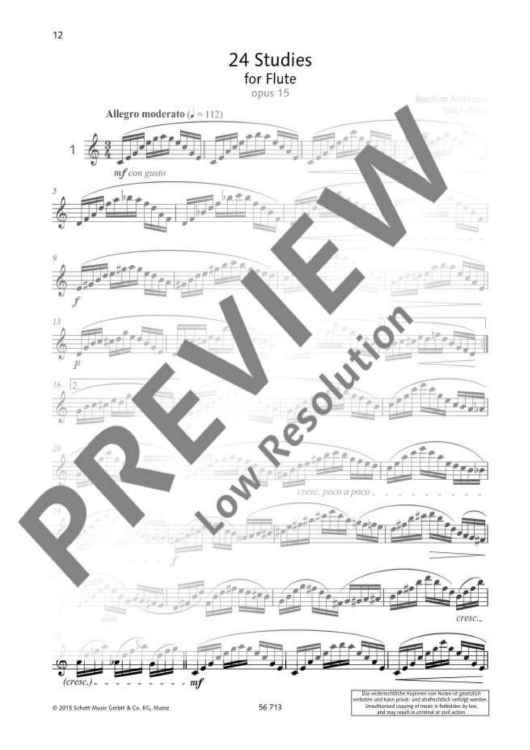The 24 Etudes by the Danish flutist, conductor and composer Carl Joachim Andersen (1847–1909) cover the whole circle of fifths and would be perfect for both professional players-to-be and ambitious amateurs alike. The wide flow of melody shall encourage the flutists to take a deeper look into the musical structure beyond the skilled manual work. This edition contains not only technical and interpretational information on all pieces, but also an index of all studies listed according to their technical focus.