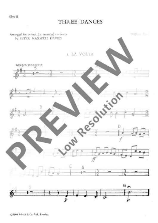 Digital Sheet Music for 3 Dances - Oboe Ii by William Byrd scored for School Orchestra; id:492671
