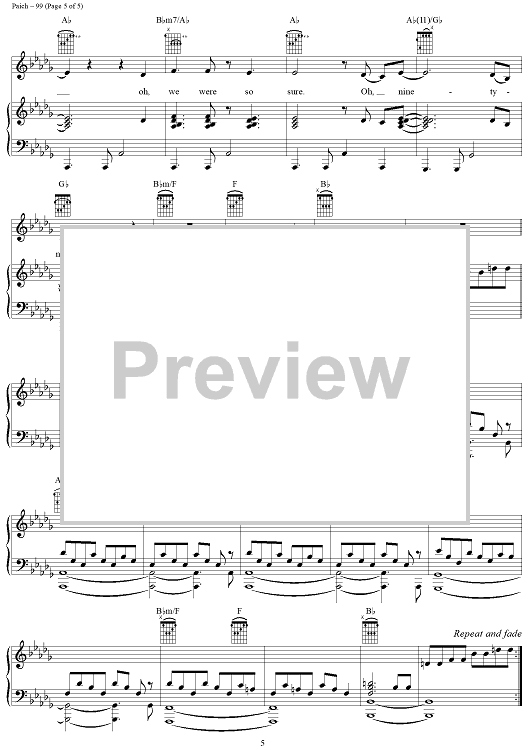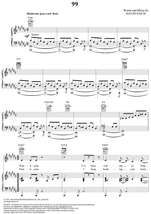 Digital Sheet Music for 99 by Toto, David Paich scored for Piano/Vocal/Chords; id:254041