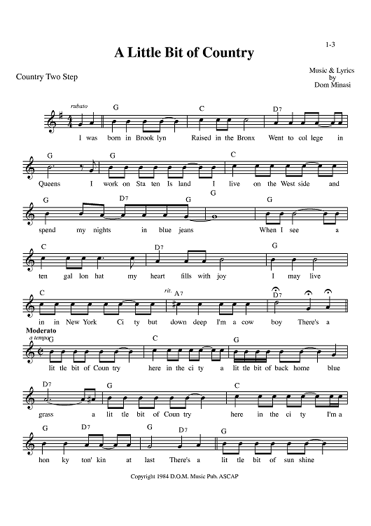 Digital Sheet Music for A Little Bit of Country by , Dom Minasi scored for Lead Sheet; id:413825