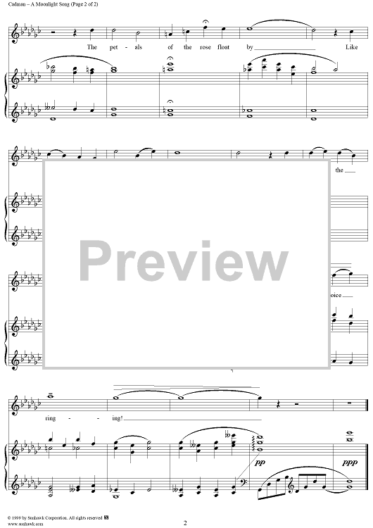 Digital Sheet Music for A Moonlight Song by Charles Wakefield Cadman scored for Voice/Piano; id:273347