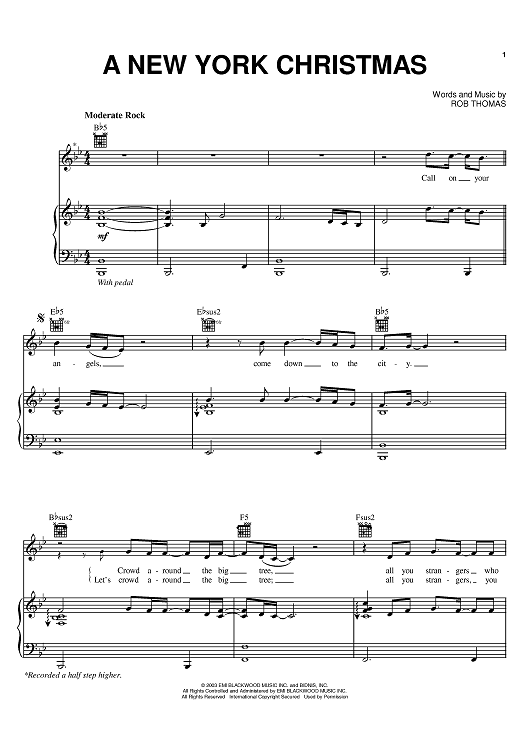 Digital Sheet Music for A New York Christmas by Rob Thomas scored for Piano/Vocal/Chords; id:375307