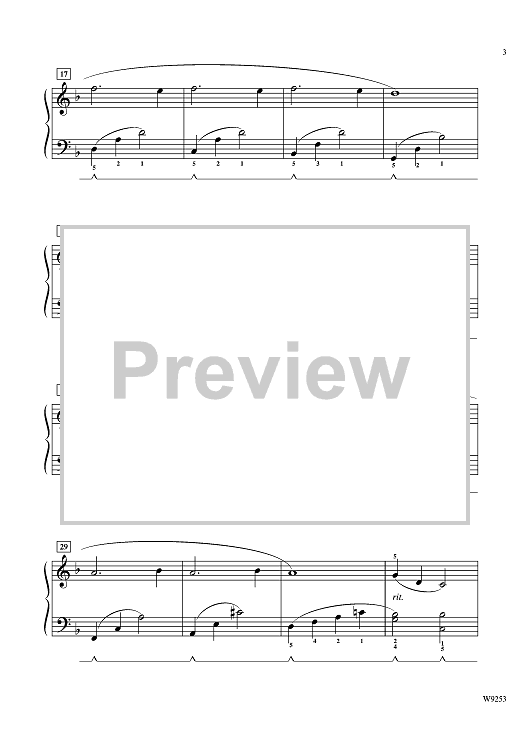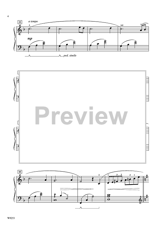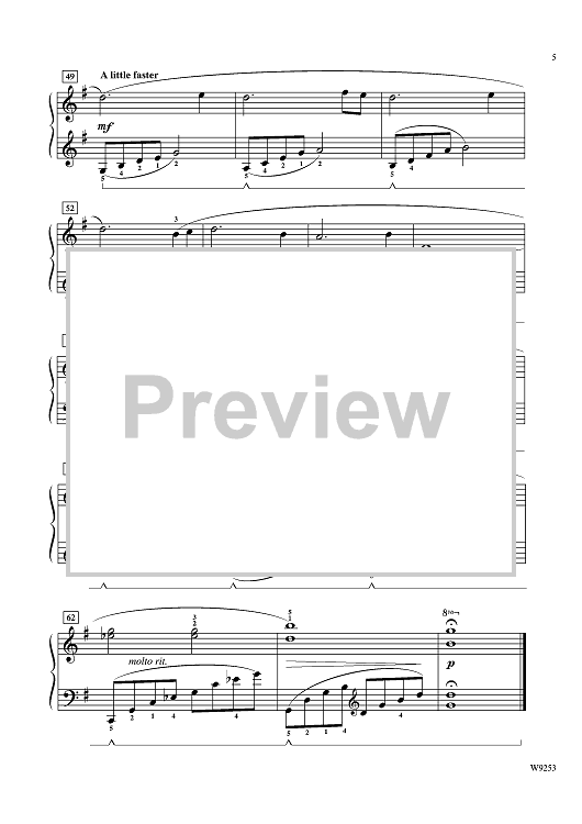 Modulates from F major to G major with the LH playing several measures of arpeggiated 10th chords. This piece conjures up images of blue skies and floating white clouds-a perfect day!