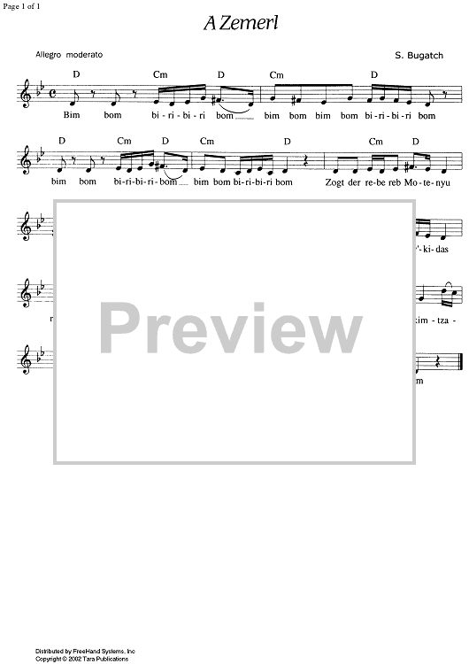 Digital Sheet Music for A Zemerl - Score by S. Bugatch, Velvel Pasternak scored for Any Klezmer instrumentation; id:348511