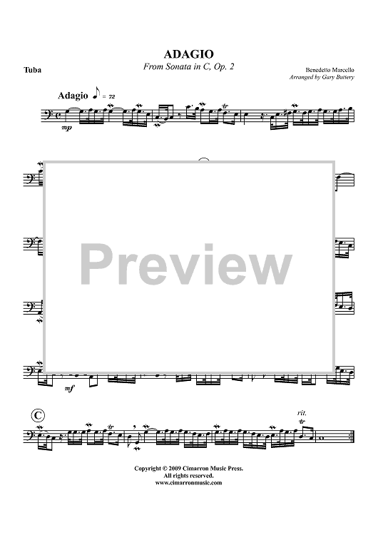 "Adagio from Sonata in C, Op. 2 - Tuba" Sheet Music by Benedetto Marcello