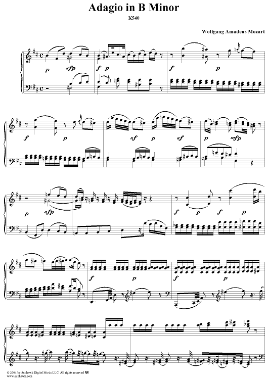 "Adagio in B Minor, K540" Sheet Music by Wolfgang Amadeus Mozart