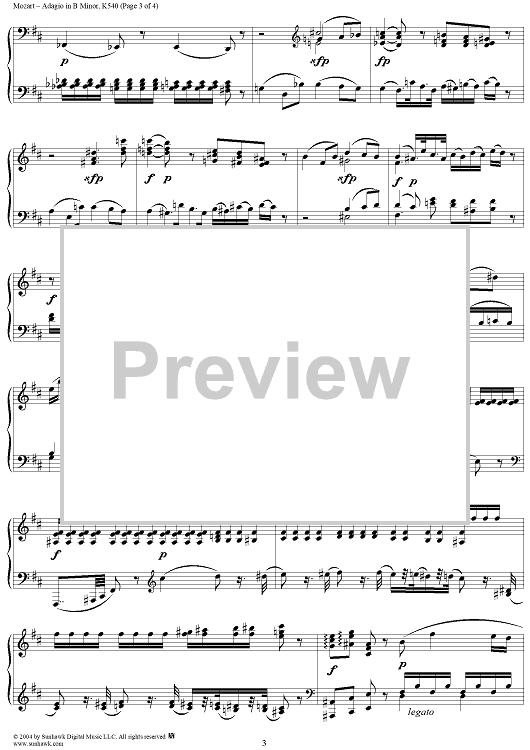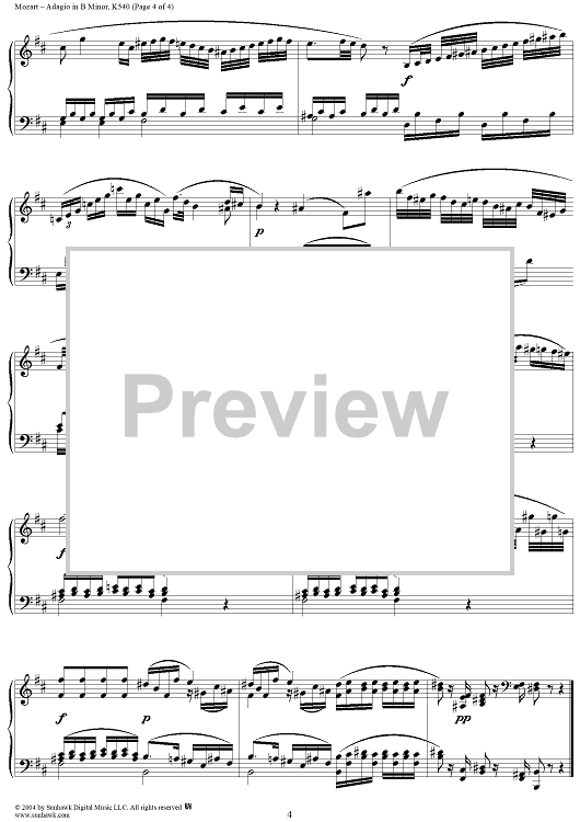Digital Sheet Music for Adagio in B Minor, K540 by Wolfgang Amadeus Mozart scored for Piano Solo; id:292332