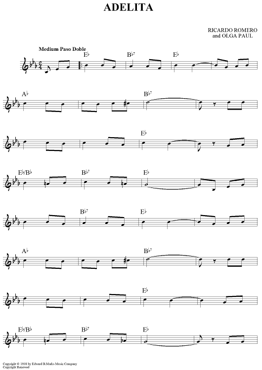 Digital Sheet Music for Adelita by Ricardo Romero, Olga Paul scored for Lead Sheet; id:444971