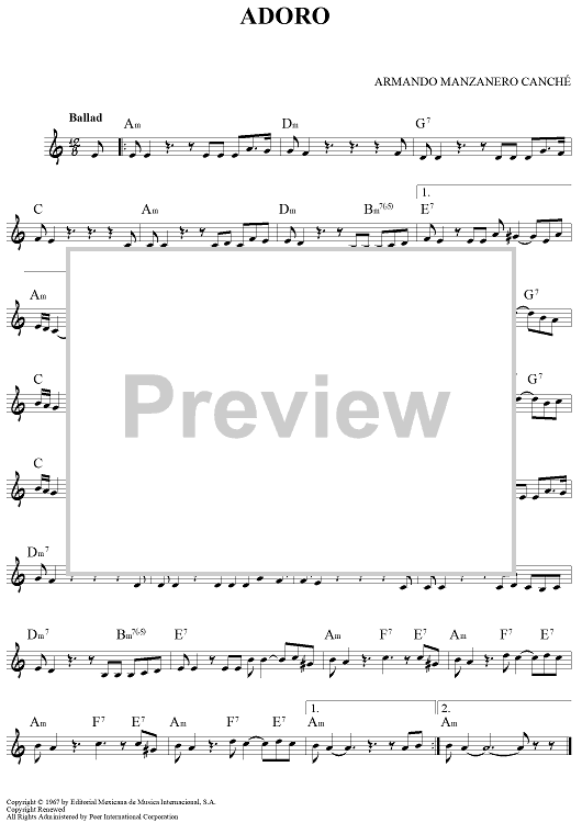 Digital Sheet Music for Adoro by Armando Manzanero scored for Lead Sheet; id:444813