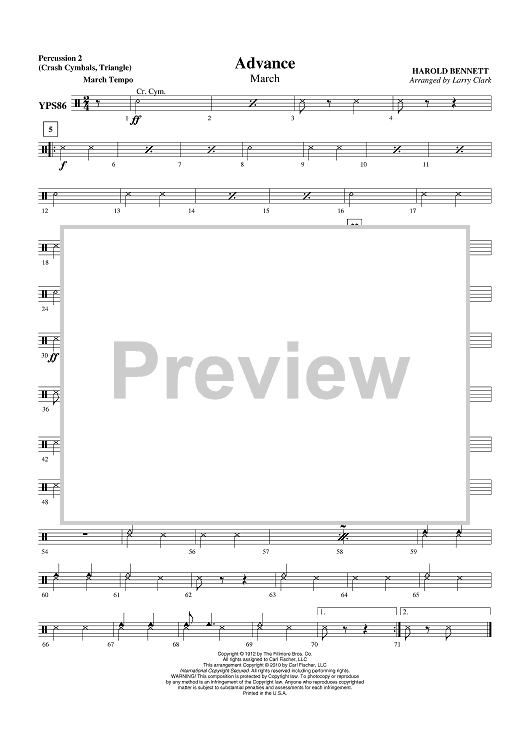 "Advance (March) - Percussion 2" Sheet Music by Harold Bennett