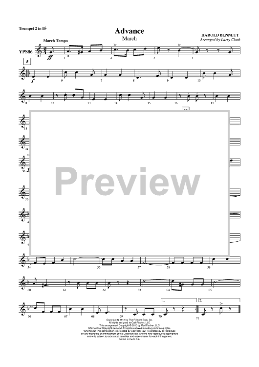"Advance (March) - Trumpet 2 in Bb" Sheet Music by Harold Bennett