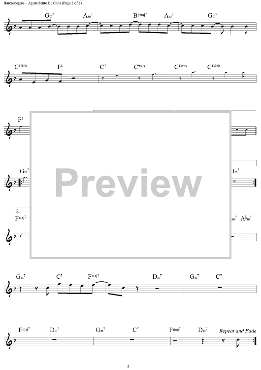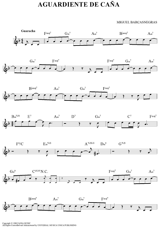 Digital Sheet Music for Aguardiente De Cana by Miguel Barcasnegras scored for Lead Sheet; id:444977