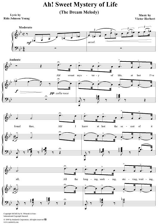Digital Sheet Music for Ah! Sweet Mystery of Life by Victor Herbert scored for Piano/Vocal; id:265519