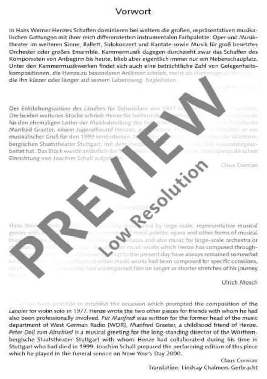 Schott présente ici en première publication les pièces que Hans Werner Henze a écrites en l’honneur d’anniversaires ou en hommage à des amis et compagnons de route. Chacune d’elles est un véritable joyau, fait avec art, affectueux, souvent joyeux ; elles révèlent Henze, compositeur d’œuvres symphoniques et d’opéra, comme un maître de la petite forme.Ces miniatures, uniques en leur genre, n’ont été longtemps réservées qu’à leurs dédicataires. Les interprètes peuvent maintenant découvrir ces précieuses œuvres - restées jusqu’à présent cachées - de la plume de Hans Werner Henze.