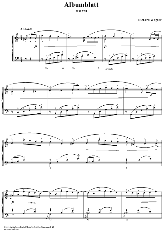 Digital Sheet Music for Albumblatt in C Major, WWV94 by Richard Wagner scored for Piano Solo; id:255423