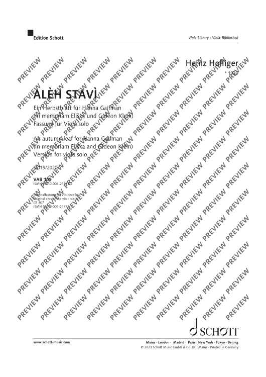"ALÈH STAVì" Sheet Music by Heinz Holliger