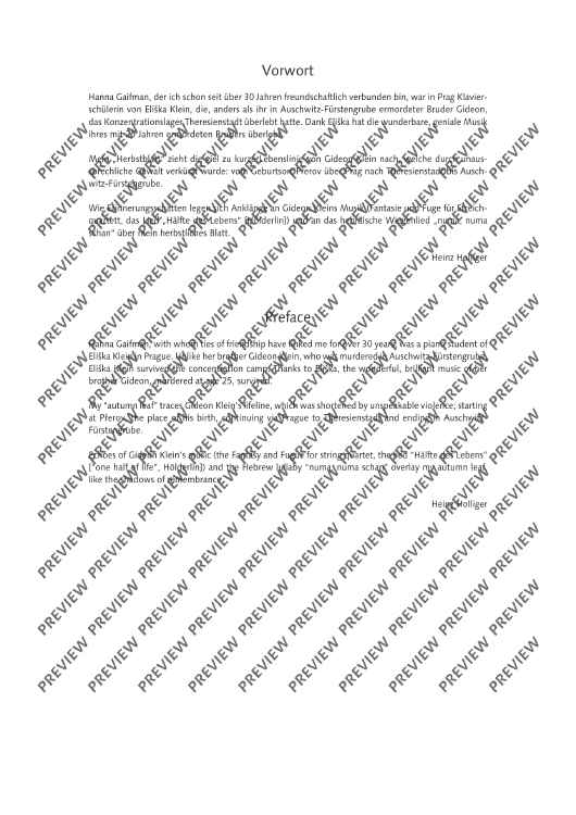 In "ALÈH STAVì", Heinz Holliger traces the biography of the composer Gideon Klein, who was murdered in the Auschwitz-Fürstenau concentration camp. Holliger intersperses quotes from Klein's works and a Hebrew lullaby as shadows of remembrance.