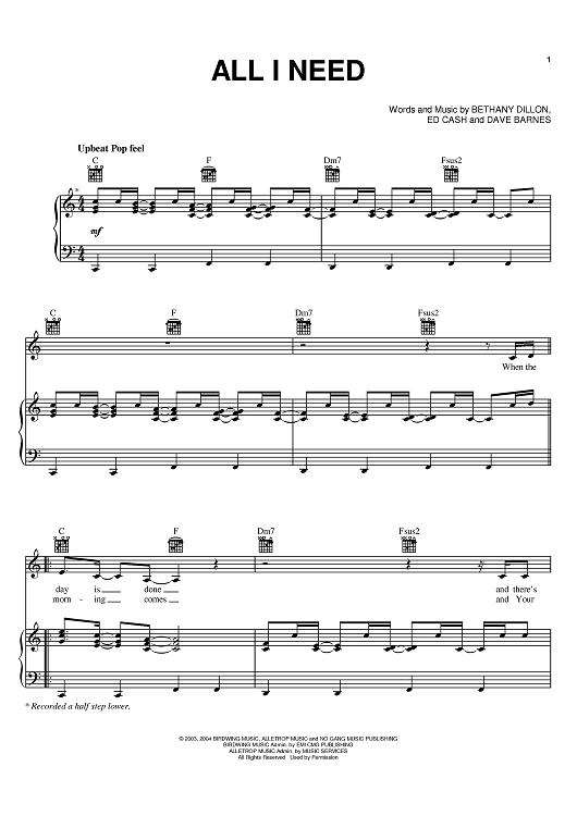 Digital Sheet Music for All I Need by Ed Cash, Dave Barnes, Bethany Dillon scored for Piano/Vocal/Chords; id:375048