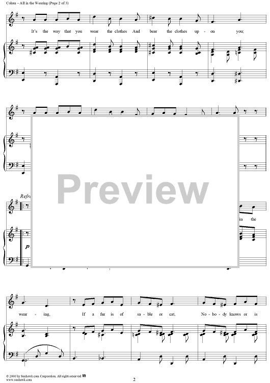 Digital Sheet Music for All in the Wearing by George M Cohan scored for Piano/Vocal; id:272645