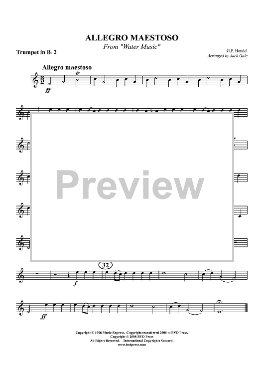 "Allegro Maestoso from "Water Music" - Trumpet 2" Sheet Music by George Frideric Handel
