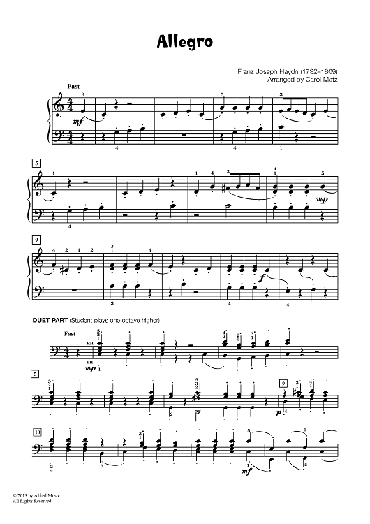 Digital Sheet Music for Allegro by Franz Joseph Haydn, Carol Matz scored for Piano; id:451514
