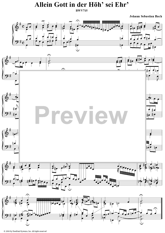 "Allein Gott in der Höh sei Ehr, BWV715" Sheet Music by Johann Sebastian Bach