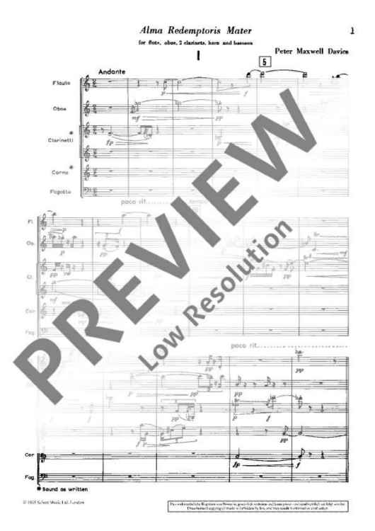 Digital Sheet Music for Alma Redemptoris Mater - Full Score by Sir Peter Maxwell Davies scored for Ensemble; id:474250