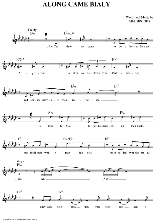 Digital Sheet Music for Along Came Bialy by Mel Brooks scored for Lead Sheet; id:457262