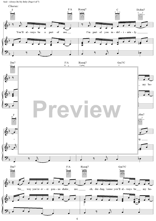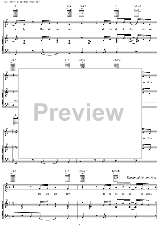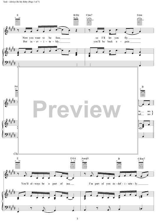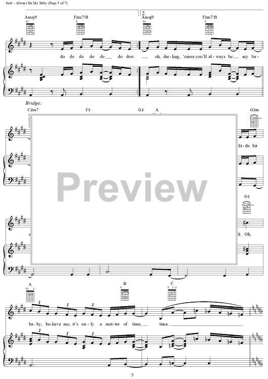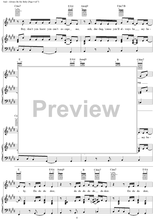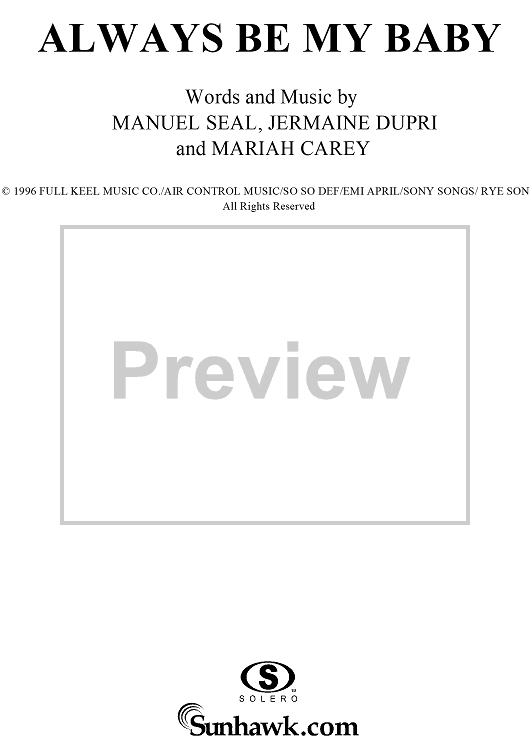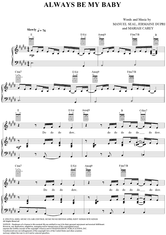 Digital Sheet Music for Always Be My Baby by Mariah Carey, Manuel Seal, Jermaine Dupri scored for Piano/Vocal/Chords; id:257666