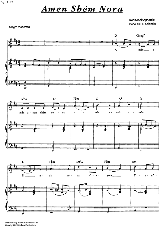 Digital Sheet Music for Amen Shém Nora by , Edward Kalendar, Traditional scored for Voice/Piano; id:343838