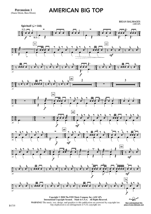 "American Big Top - Percussion 1" Sheet Music by Brian Balmages